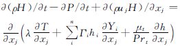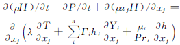 (4)能量方程。能量方程描述了流動過程中流體的能量守恒性質,考慮組分影響后的方程為: