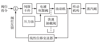 圖2為GV3的控制原理圖。由圖2可知,GV3為閉環控制,閥位指令信號與閥位反饋信號比較后形成閥位偏差信號,經伺服放大器轉換成電流信號并進行電功率放大,接著在電液伺服閥中將電信號轉換成高油壓信號,用以驅動油動機,進而通過傳動機構改變閥位。線性位移變送器測量的閥位信號反饋至調節回路的輸入端,使閥位偏差信號逐漸減小。當閥位偏差為零時,系統便達到新的穩定狀態。